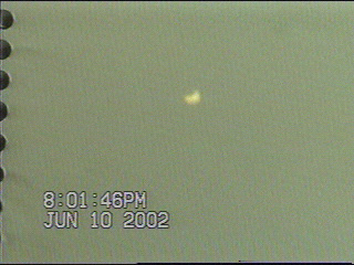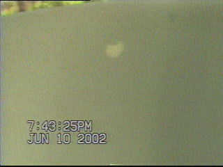At 7:38pm, a distinct "bite" can be seen at the top of the sun. This image was taken by projecting the sun's image through a tiny hole in a piece of cardboard.