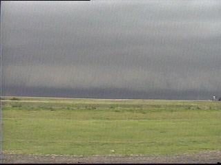 A view of the same shelf, looking northwest. A big cloud of red dirt can be seen being kicked up all the way to the cloud base. I was not able to determine if there was any rotation in this cloud of dirt.