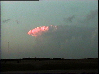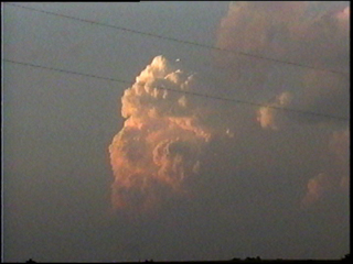 Looking west from south of Hydro on Hwy 58 at 7:27pm. Although this storm does not appear to be producing much in the way of precipitation, quarter to golf ball sized hail was occurring in the Clinton area at this time.