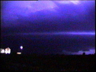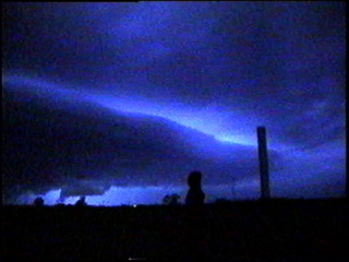 Jeff watches in amazement as frequent lightning reveals the storm's structure and silhouettes the Sayre smokestack.