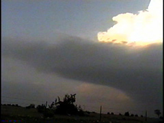 Looking east from east of Marietta OK at a supercell thunderstorm churning away just before sunset.